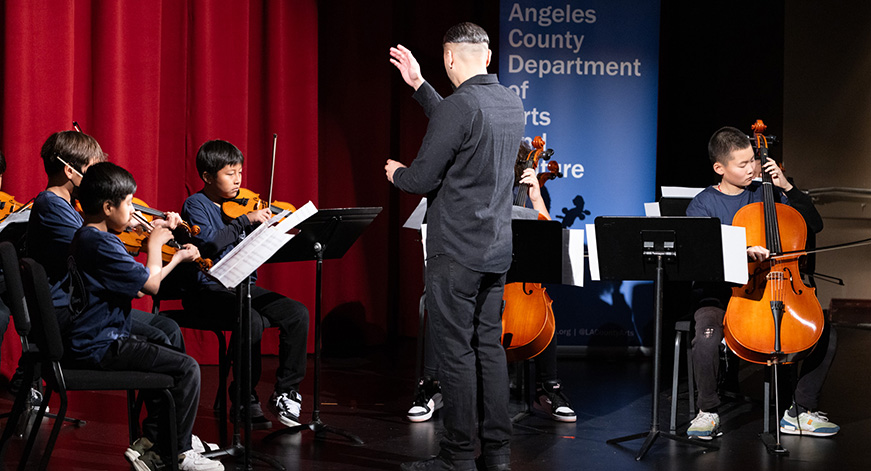 The Arts Ed Collective continues to deepen arts instruction and engagement for incarcerated and at-promise youth across the County, delivering services in juvenile detention facilities, continuation schools, County parks, and other community settings. This past year saw the launch of a prototype curriculum by the Boyle Heights Arts Conservatory, who integrated the arts into school-day American history instruction at Los Padrinos Juvenile Hall. These lessons combined historically marginalized perspectives with learning objectives from statewide standards to provide students with a culturally relevant and sustaining curriculum. We also celebrate the publication of a second evaluation report on Creative Wellbeing, which captured promising practices and the positive social-emotional benefits for young people who participated in healing-centered, arts-based programs.